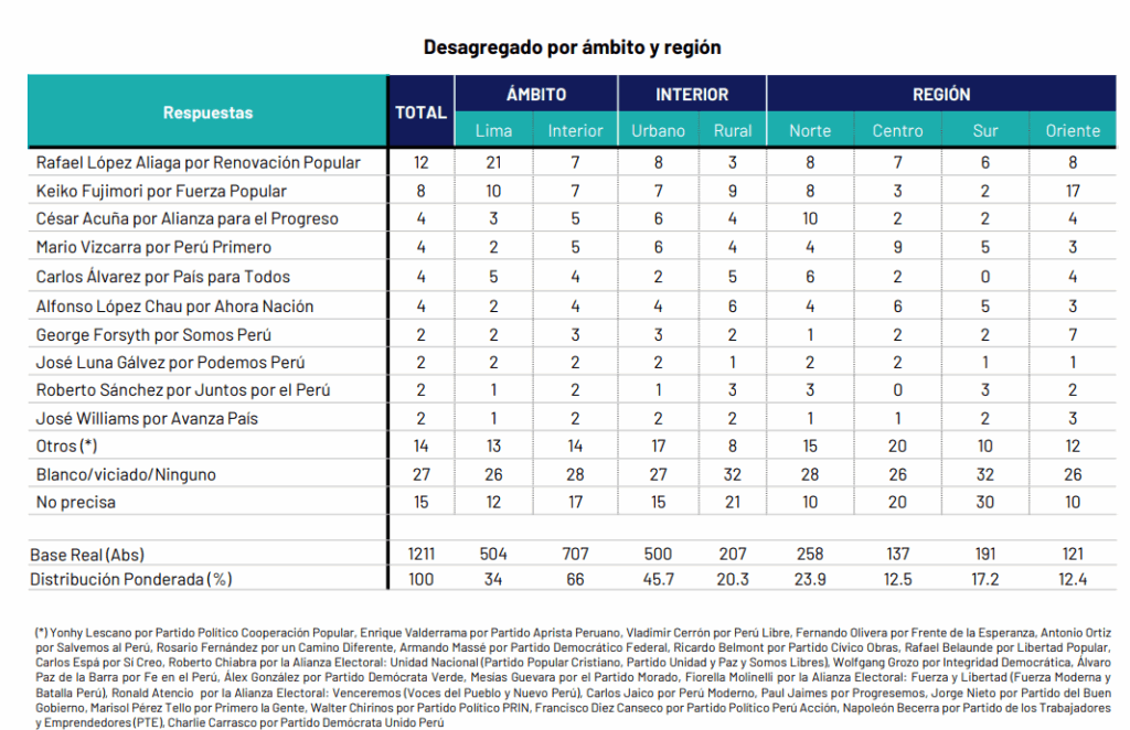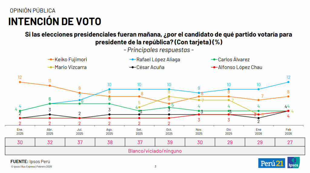 Para López Aliaga, en cambio, el problema está en captar el voto regional, ya que, según la encuesta de Ipsos, hasta antes de la censura a Jerí estaba empatado con Keiko Fujimori en su apoyo en regiones. No obstante, el impacto de esta disputa no podría verse solo en estos partidos.